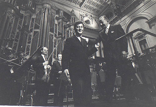 ABOVE: Sir Bernard (at right) congratulates composer Peter Sculthorpe after after a premiere performance at the Sydney Town Hall. (Photo source: ABC) Born in Victoria, conductor and musician Heinze studied violin in Melbourne and Europe. He turned down posts in Europe to become Ormond Professor of Music at the University of Melbourne, a position he held for thirty years, 1925-55. Discouraged by Australian audiences' lack of interest in music, he initiated the Young People's concert series, which now draw 200,000 children each year. He was conductor of the Victorian Symphony Orchestra, 1933-56, and life conductor of the Melbourne Philharmonic from 1928. In 1929 Heinze was appointed music adviser to what became the Australian Broadcasting Commission. There he oversaw the inception of its State symphony orchestras, celebrity concerts, youth concerts and fine music broadcasting. Heinze introduced Aussie audiences to the music of Bruckner, Shostakovich, Bartok and Walton and championed the work of Australian composers. He was the first Australian to be knighted for services to music in 1949, by which time the Sydney and Melbourne orchestras were of world standard. On his retirement in 1965. Heinze was hailed as the most influential figure in Australian music, with one critic declaring: "there is not a fibre of our musical life that has not been modified by his career". |